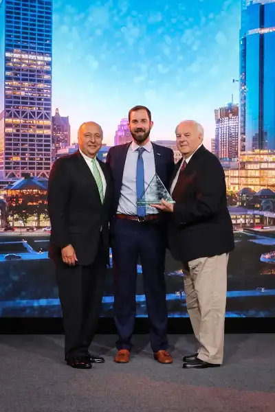 The recipient of the Karl Flemke Pioneer Achievement Award for 2018 was Drew Martin (pictured left) of Junior Achievement of South Central Kentucky (Bowling Green, KY).